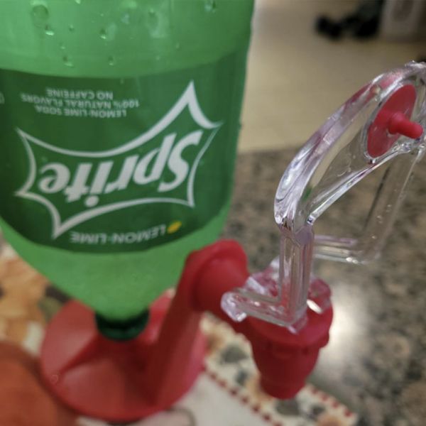 Schrauben Sie die Gummimündung langsam und fest auf die gewünschte Trinkflasche und drehen Sie sie dann langsam auf den Kopf. Stellen Sie das Glas unter den Ausguss, aus dem das Getränk austritt, und bewegen Sie es in Richtung des transparenten Griffs. Dadurch wird das Getränk in Ihr Glas fließen. Wenn das Glas voll ist, ziehen Sie es weg und der Ausguss schließt sich automatisch.